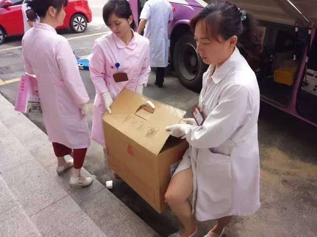 每次外出团无采血,都像一次行军打仗,那么多的物资和设备都由职工自己搬运。大热天,职工们准备完毕后,来不及擦干身上的汗水,就投入到紧张的采血工作中。