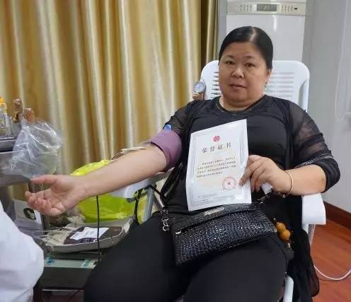 固定献血者张女士第一次参加无偿献血是在2003年,因为女儿的一次手术。之后为了帮助更多像自己女儿一样的病人,她一有机会就参加无偿献血,到现在已经累计15次。