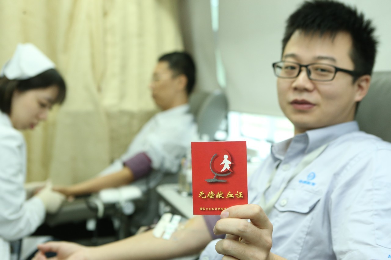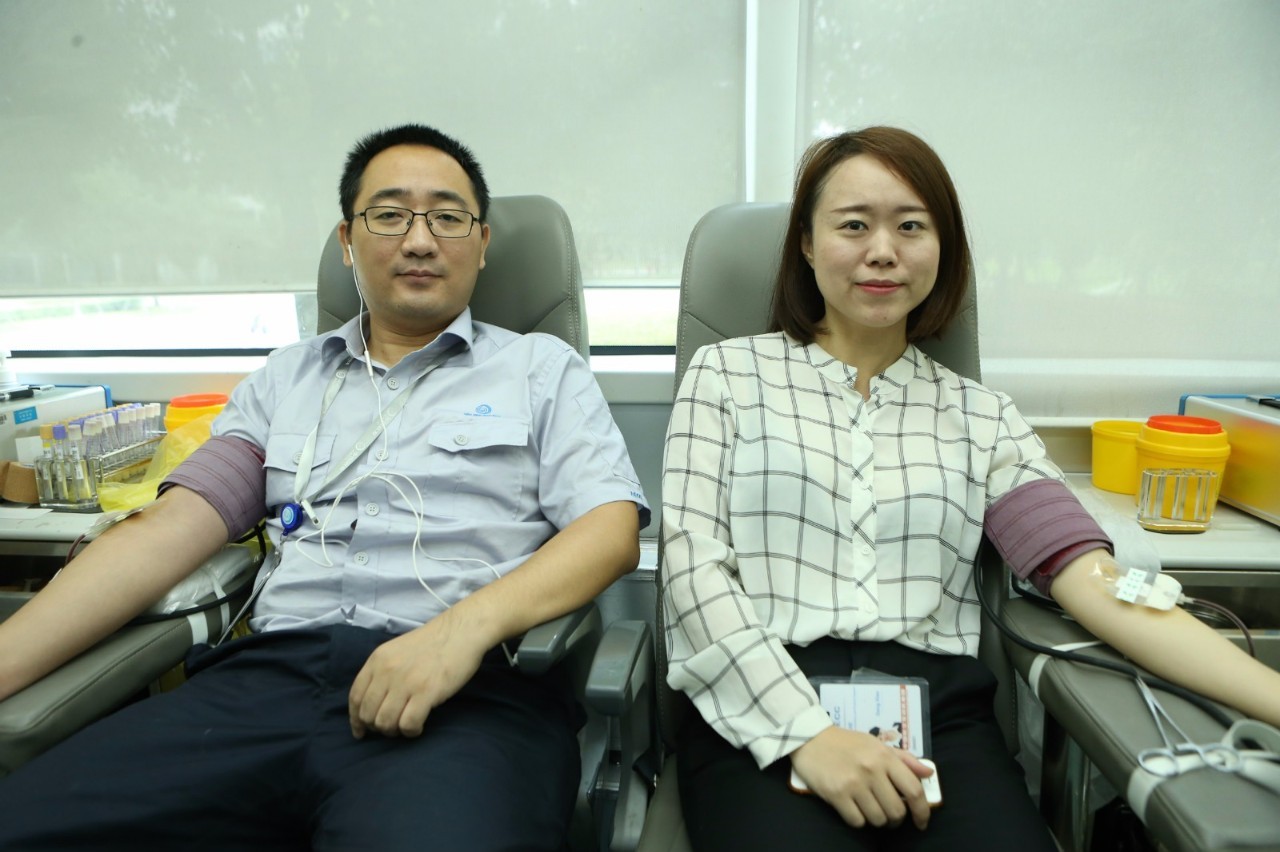 来自规划发展部的曹喜庆,第一个登上停靠在公司大院的爱心献血车上撸袖献血,第2次参加献血的他说:“上次献血还是在大学时,毕业后一直想再次参加献血,忙于工作没能顾上,献血车开进公司很方便。”姚炎是一名退伍武警战士,在部队曾参加过献血,他认为:“献血救人,对于健康成年人来说只是举手之劳的事情。”