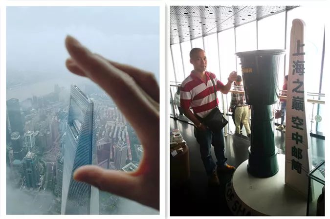 志愿者们乘坐目前世界上最快的超高速电梯(最高速度可达每秒18米),仅仅55秒,大家还来不及惊叹,便已来到了546米高的上海之巅118层观光厅。尽管当天的上海阴雨连绵,118层观光厅更是云雾缭绕,但风云变幻的自然美景与繁华的城市景观交相辉映,也是别有一番韵味。万国博览群、外白渡桥、环球金融中心、金茂大厦、东方明珠等尽收眼底,志愿者们细数着众多知名建筑,尽情享受着身处巅峰的独特体验。还有的志愿者在特别设置的空中邮筒中投入了明信片,从上海之巅寄出最高的祝愿。