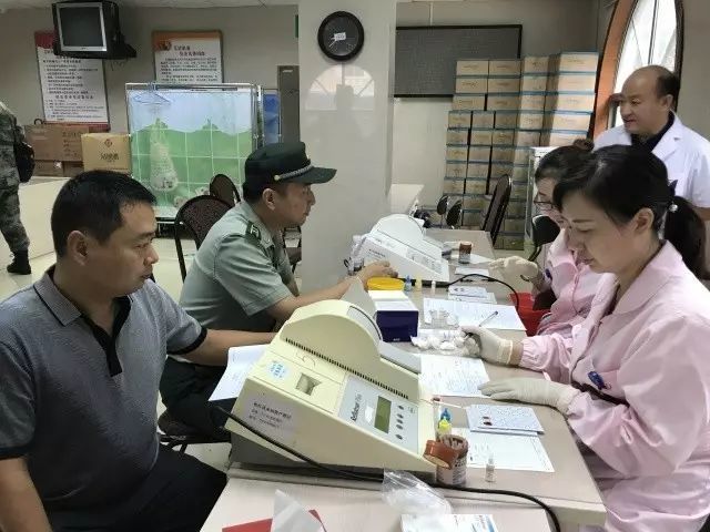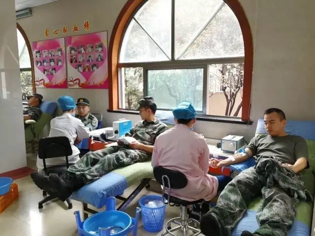 为喜迎国庆佳节,保障节日期间临床用血需求,驻松某部队官兵来区血站举行团体无偿献血活动,奉献爱心,以实际行动向党的十九大献礼!