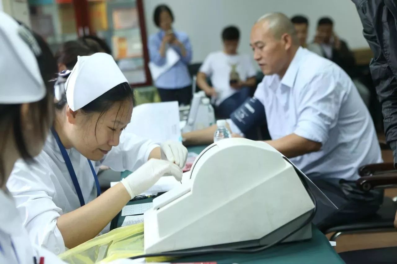 在上海锅炉厂有限公司医务室大厅内外人来人往,大家填写献血登记表、体检、等待献血,秩序井然。