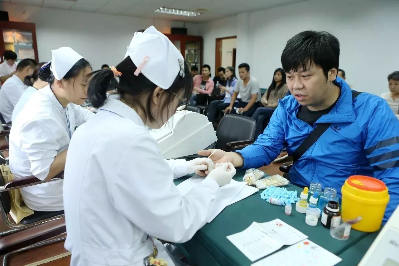 第4次献血的建飞是AB型Rh阴性血,体检合格后,二话没说伸出臂膀再次献出一份爱心。,身旁的同事得知建飞是稀有血型还和他开玩笑:“哇,你就是传说中的‘熊猫血’呀!得重点保护你哦!”