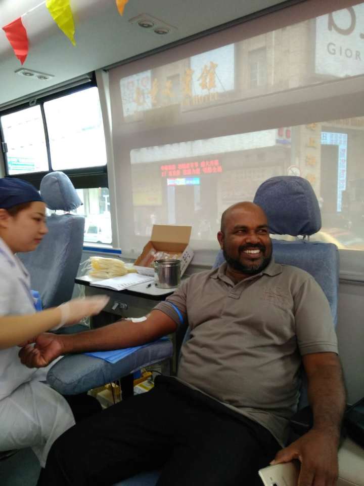 节日八天,不乏父女、母子、情侣、夫妻双双来把血献,在中国的一些国际友人也欣然加入到了献血这项全球化的公益活动中。团队志愿者葛兰,张金存,单一冬,盛洪伟,孙杰,王跃忠在献完血后仍参与着现场的活动,他们现身说法、体会传授,欢迎鼓励着更多的人捋袖献爱,为中国加油,为国旗增辉。