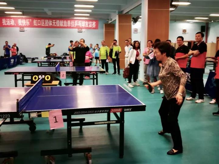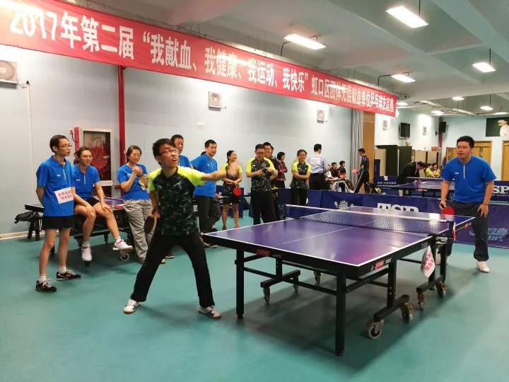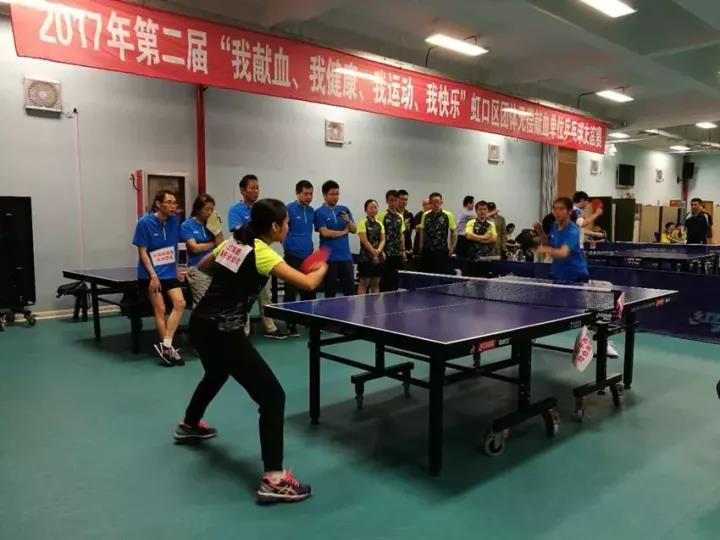 为纪念《献血法》、《献血条例》实施十九周年,2017年10月20日,第二届“我献血、我健康、我运动、我快乐”虹口区团体无偿献血单位乒乓球友谊赛在虹口训练馆乒乓球馆火热开赛,16支团体无偿献血单位共96名选手参加比赛,虹口区卫计委党工委书记郭海英、虹口区卫计委副主任葛磊莅临比赛现场。