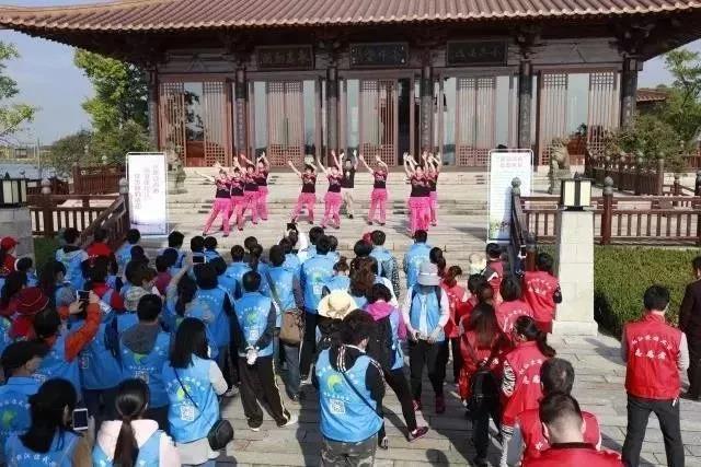 来自松江区卫生计生系统和石湖荡镇的志愿者近120人齐聚美丽的浦江之首