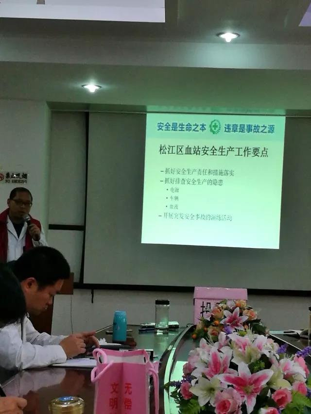 2017年11月30日,松江区血站在科教室召开了安全生产专题会,会议传达了区卫生计生委安全生产工作相关要求,通报了松江安全生产工作情况,并结合采供血工作实际对安全生产工作进行了安排部署。会议由盛金星站长主持,血站全体职工参会。