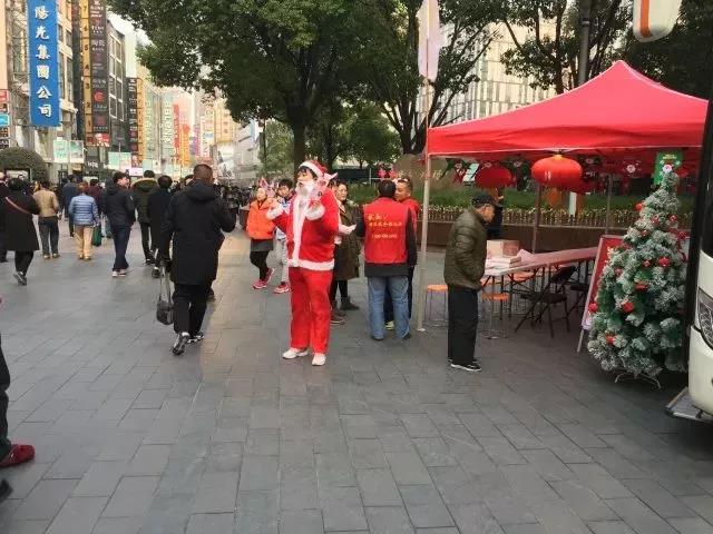 志愿者装扮成圣诞老人向市民派发宣传资料,讲解宣传无偿献血知识。据悉,从23日开始就有不少志愿者走上爱心献血车无偿献血。为了更好地为大家服务,爱心献血车的工作人员将原本于下午6点的下班时间延迟到晚上9点。