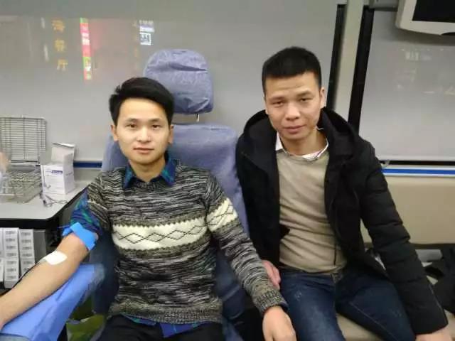 同伴陪同下参与献血的丁先生