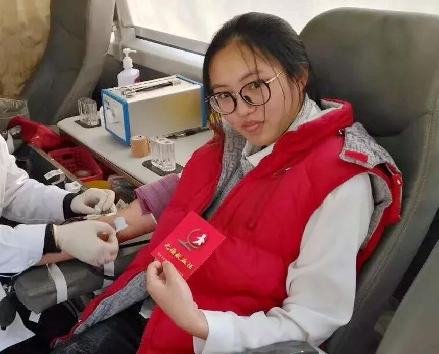 上海商学院的学生邸齐倩,趁假日来到停靠在颛兴路颛卫路路口的献血车,做志愿者,向市民宣传无偿献血。临近结束,她欣然填写起献血登记表,完成了人生首次无偿献血。