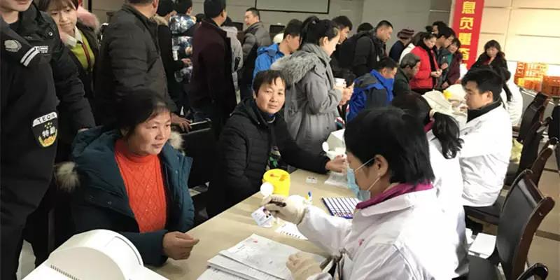 虽然当天气温极度低下,但是献血现场却是人头攒动,气氛热烈,许多报名献血的同志井然有序的配合着医护人员伸出手臂,献出自己的一份爱心。