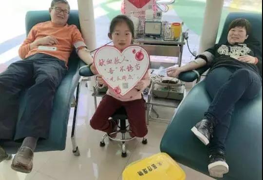 2月13日,胡修文、张玉叶夫妇俩带着孩子,来到梅陇爱心献血屋当着孩子的面分别再次献血400ml。献血时,又拍了一张“献血全家福”。
