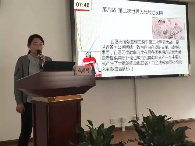 2018年3月28日,阳光明媚,窗外桃花、梨花竞相争艳。在奉贤区血站二楼会议室,一场有意义的无偿献血宣讲志愿者授课技能比赛正如火如荼中。