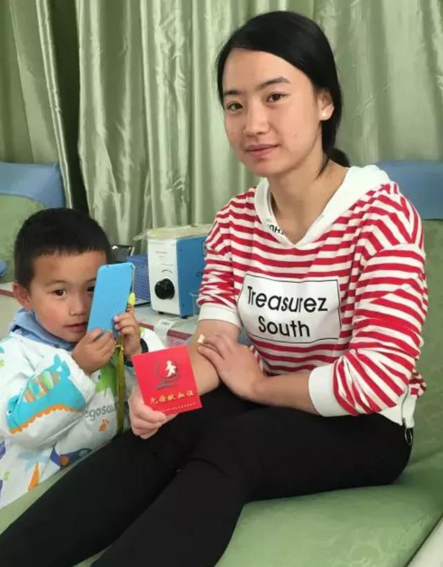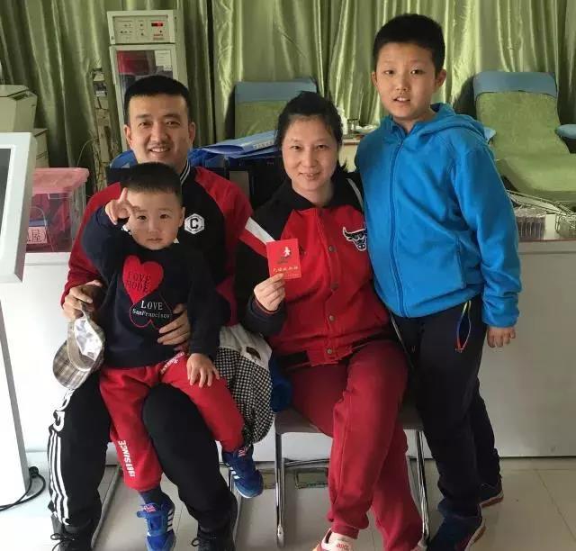 郭欢欢,第十次献血,献血总量4400ml,老公和两个儿子陪同,全家一起做公益。