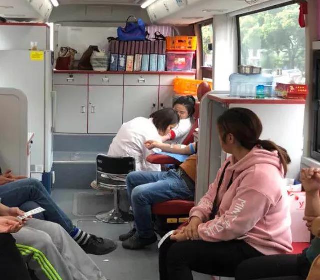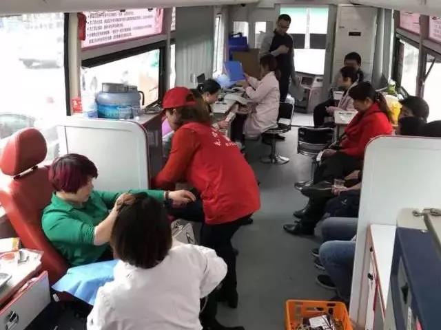 小圆桌旁人头攒动,络绎不绝,身着红马甲的志愿者们为过路人宣传着无偿献血知识和献血流程等,并耐心地为献血者指导填表、解释、送上献血车。