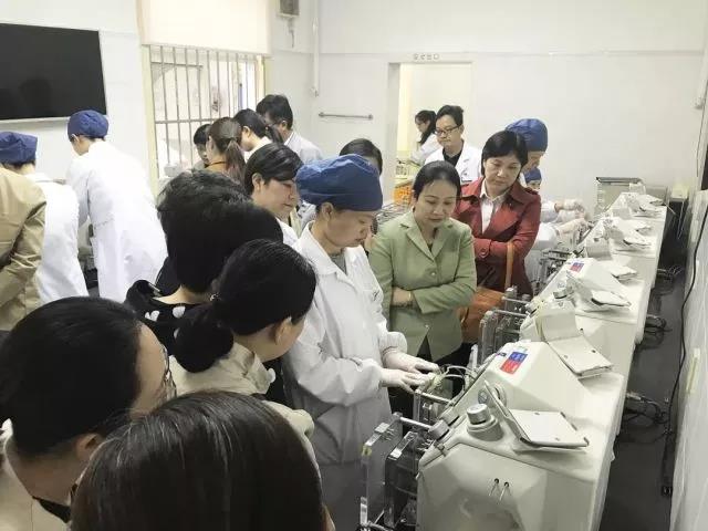 在成分室,嘉定血站采供科工作人员介绍了全自动分离机的操作流程,并当场演示了分离的全过程。在分享经验的过程中,吴秋红科长就关键控制点做了详细的讲解。