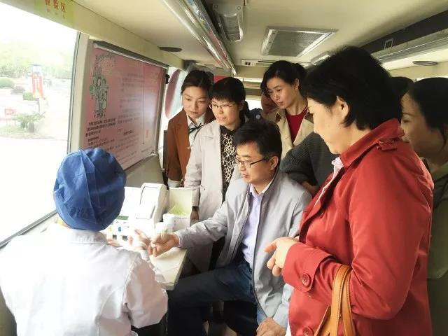 临别前,金山区同行来到位于博乐广场的爱心献血车,参观了车内布局和设施,当看到工作人员使用无痛末梢血采血针时,金山区血站周杰书记当场亲自体验了一番,并且对这小小的高科技新材料赞不绝口。他说:“相比传统的采血针,一点小小的改变降低了献血者的疼痛感和恐惧感,提升了献血满意度。”