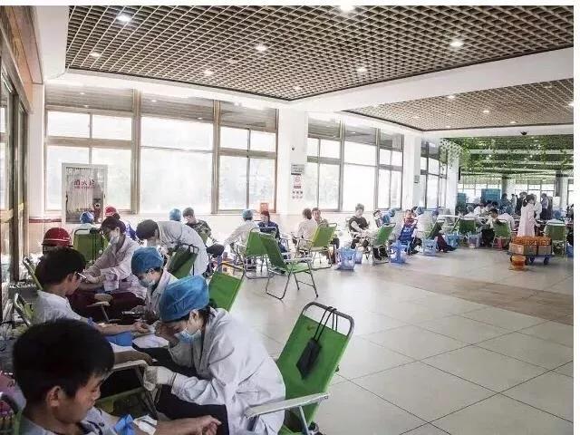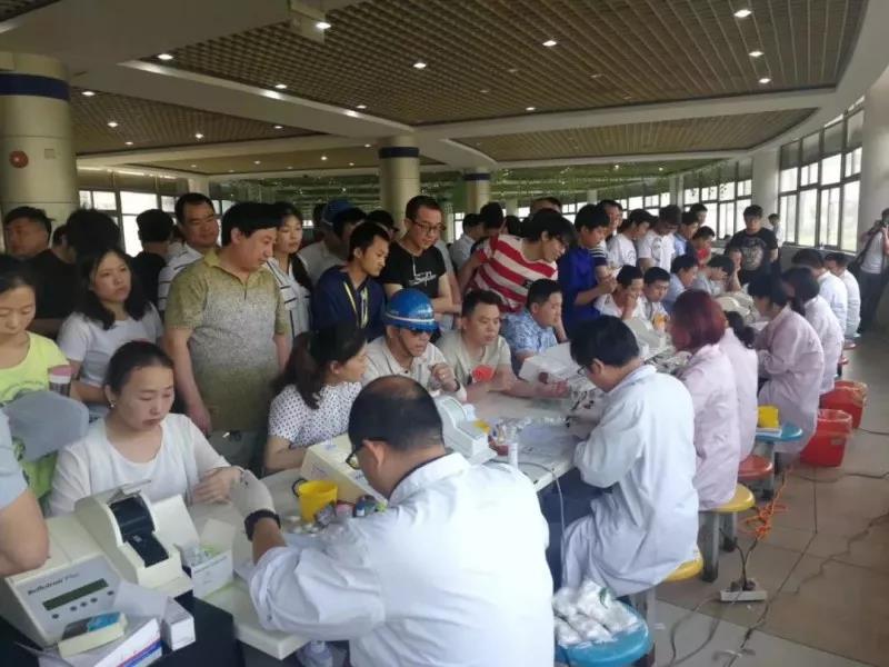 一大批正在工作岗位上的员工来不及换下工作服就赶来献血。还有一些休息的员工也积极主动加入无偿献血的队伍。