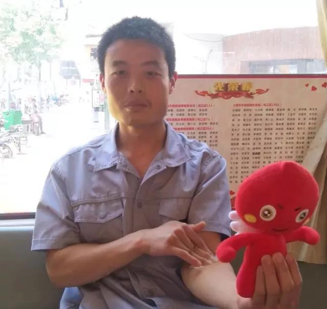 刘和成,2018年1月份捐献了血小板,后来去外地工作,这两天刚回松江区就趁着假期过来献血,这次献血400ml!记录显示,这是他在上海地区的第17次献血!