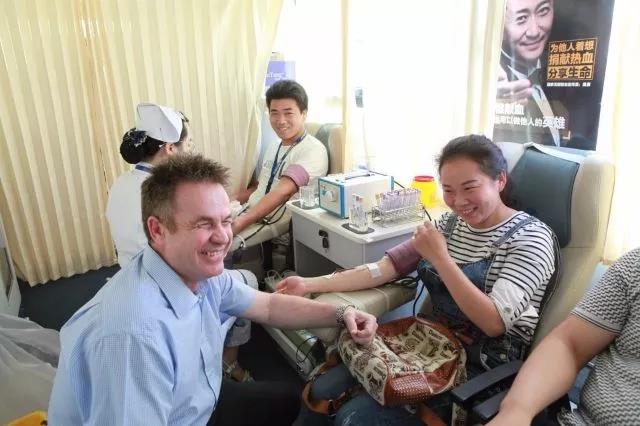 参加献血的还有周月星、孟飞、赵峰伟等员工。Kevin Grant还饶有兴致地和参加献血的员工合影留念。