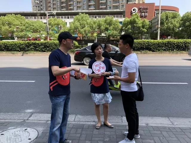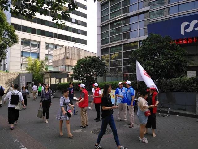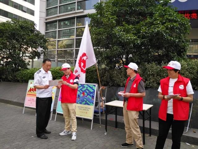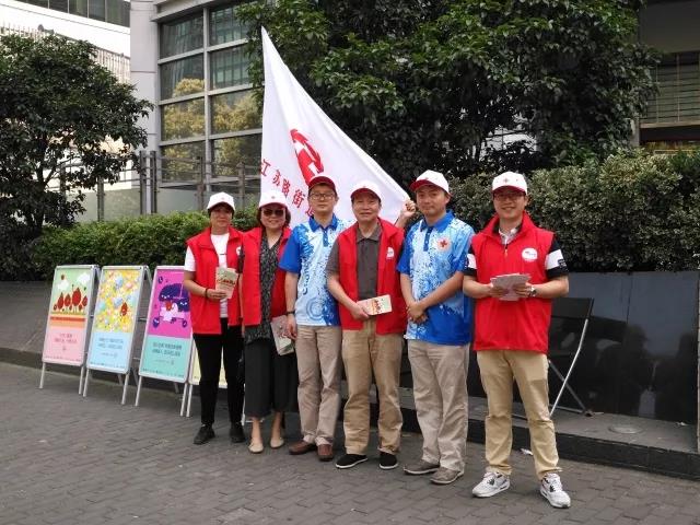 同一天,长宁区江苏路街道献血办的志愿者们也以“为他人着想。捐献热血。分享生命。”为主题,在辖区内组织和开展了无偿献血宣传活动。
