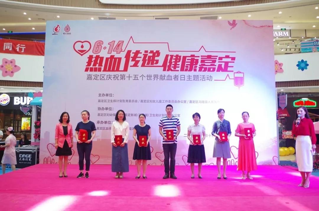 6月14日上午,由嘉定区卫计委、嘉定区妇儿工委办公室、马陆镇人民政府主办,嘉定区妇幼保健院、嘉定新城(马陆镇)卫计办协办,嘉定区血液管理办公室(嘉定区血站)承办的“热血传递,健康嘉定”嘉定区庆祝第十五个世界献血者日主题活动在马陆大融城隆重举行。