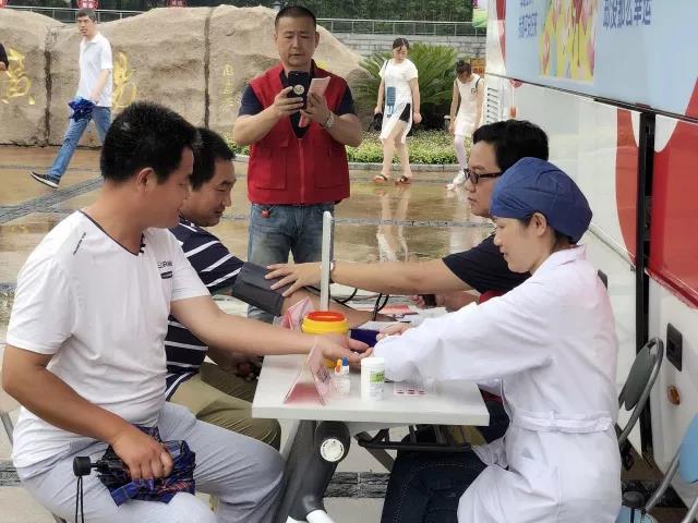 活动结合单位实际工作,党员走上街头宣传无偿献血知识,并为市民提供免费测血型、量血压、用血咨询等便民服务。梅雨季闷热潮湿的天气挡不住党员们的热情和激动,大家统一着装,佩戴党徽,以饱满的热情和诚挚的态度全身心投入到志愿服务中。