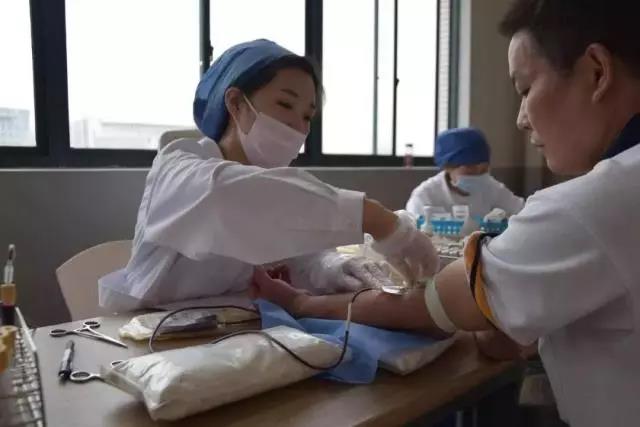 车刚停稳,工作人员便迅速开展准备工作,迎接献血者的到来。献血者排起了长龙,虽然屋外下着绵绵细雨,天气十分闷热,然而屋内却是温馨一片,填表—体检—献血—发放纪念品—给献血者讲解献血后注意事项,大家忙忙碌碌,连喝口水也是急急忙忙,生怕耽误一点时间,为的是让献血者减少等候时间。一上午下来,衣服湿了又干了,但这丝毫没有影响到大家的工作热情。