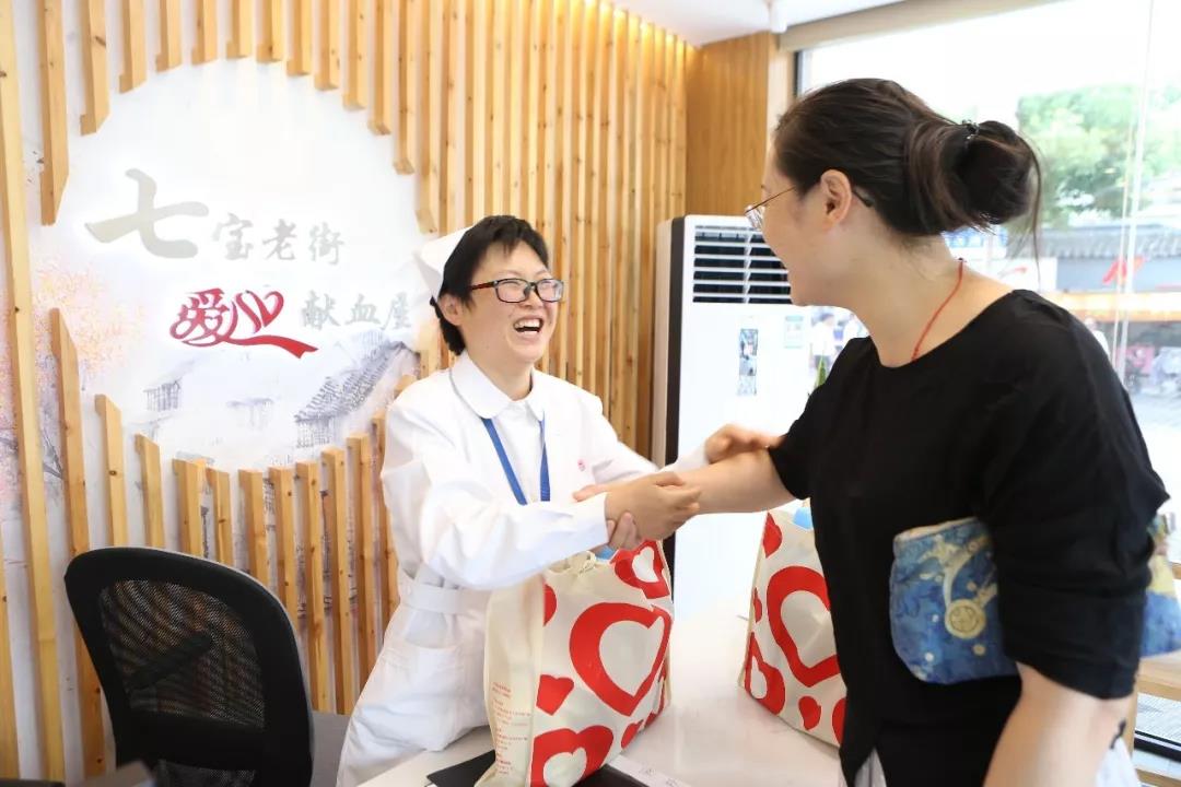 在七宝爱心献血屋,诸主任和社区无偿献血志愿者进行了亲切的交流,称赞她们无私奉献的精神。走进七宝老街爱心献血屋,看到53岁的王兰秀正在献血,她急忙走上前道谢。来到梅陇爱心献血屋,碰上固定献血者杨以桥正在捐献血小板,关切地说:“献血后,多喝水,注意适当休息。”得知杨以桥坚持无偿献血10余年,累计捐献全血、血小板达140余次时,更是称赞他精神可嘉。