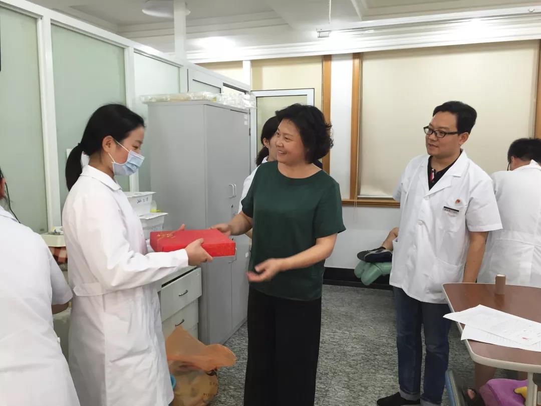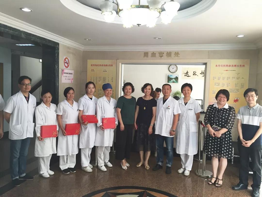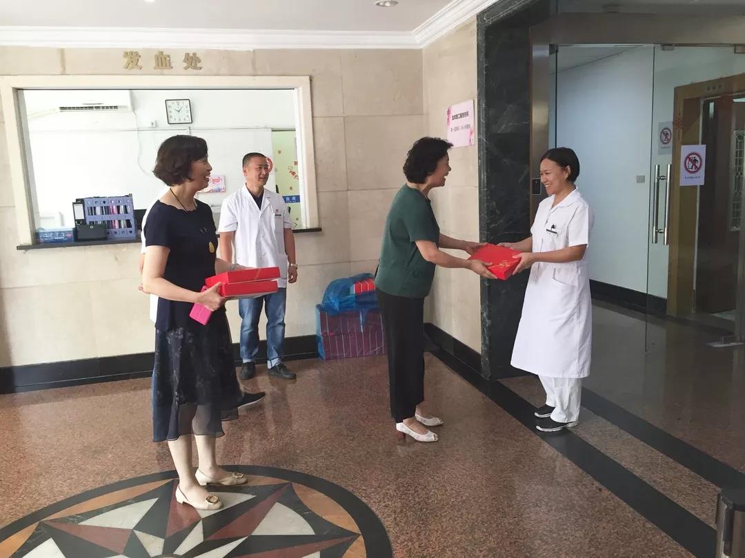 7月30日上午,嘉定区卫计委党委副书记朱灵、医务工会主席杜惠琴、医政科科长沈恋迪、人事科科长高飞一行来到血站,对高温下坚守岗位的采供血一线工作人员表示亲切的慰问。