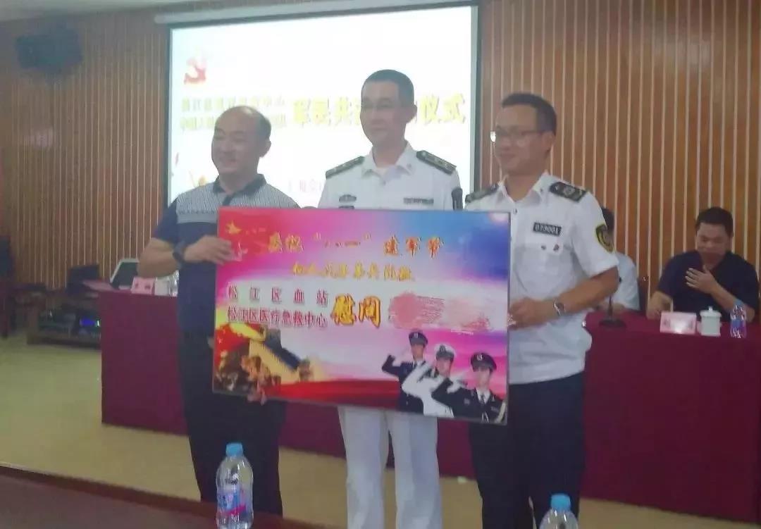 在松江区卫计委党委的领导下,区血站和医疗急救中心联合慰问驻松海军某部,并联合举行了庆祝“八一”建军节军民联谊活动。