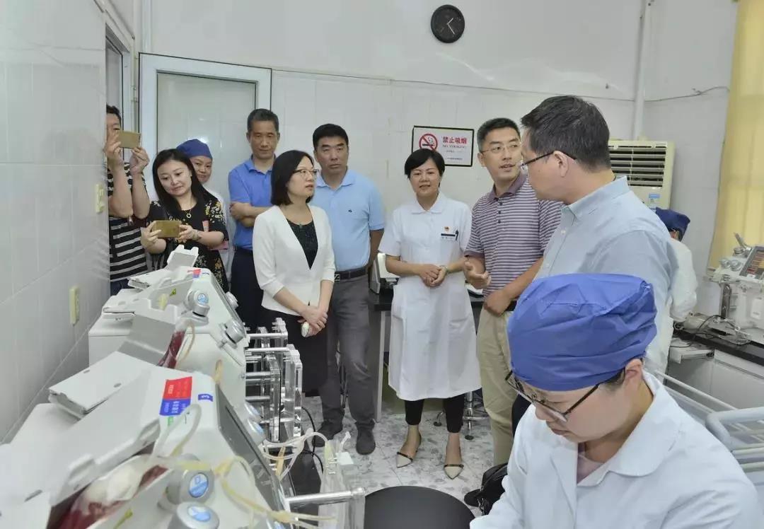 8月1日下午,上海市血液中心主任陆韬宏和市血液中心党委书记、市血液管理办公室主任邹峥嵘带领的“上海市血液保障系统调研组”一行在嘉定区卫计委主任方云芬的陪同下,来到嘉定区血站进行大调研,同时向坚守岗位的采供血一线工作人员送上高温慰问。