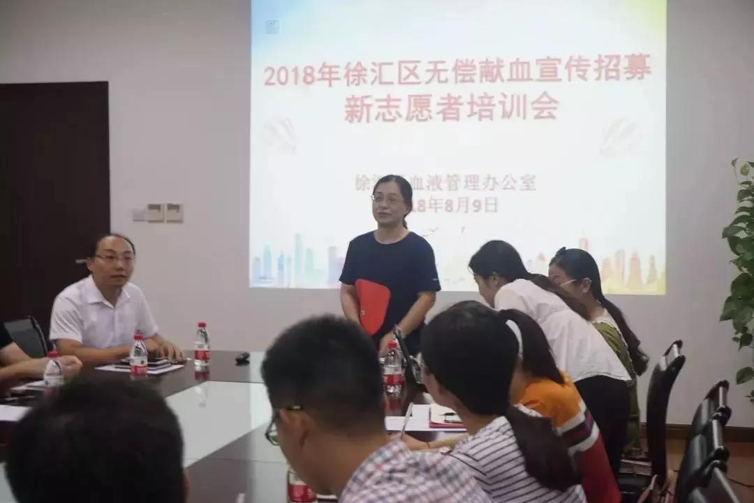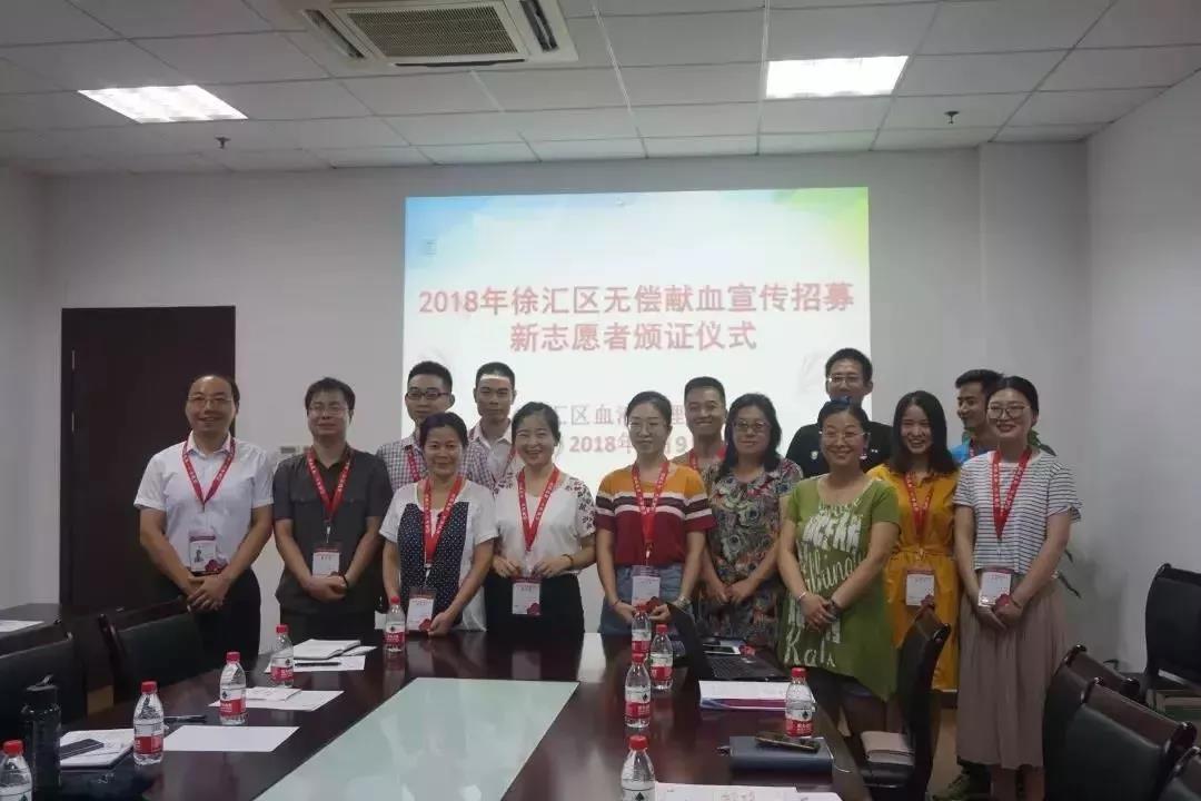 在无偿献血宣传新志愿者招募颁证仪式上,区血管办向全体组员颁发志愿者服务证、赠与统一的志愿者服装并组织大家到徐汇区献血点(上海南站站点)进行现场观摩。