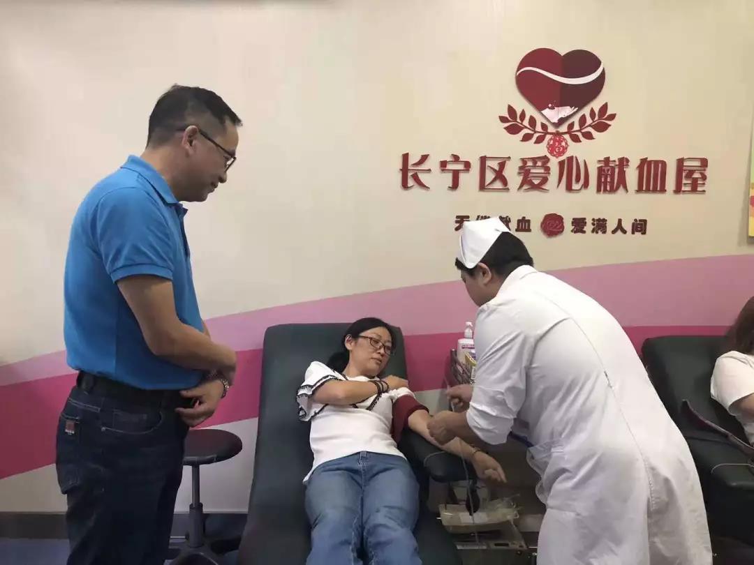 2018年8月21日,长宁区新华街道社区卫生服务中心无偿献血志愿者们在党政领导的带领下来到长宁区爱心献血屋。当天参加献血人员中有中心党员、团员、中层干部等6人,共计捐献1200ml血液。