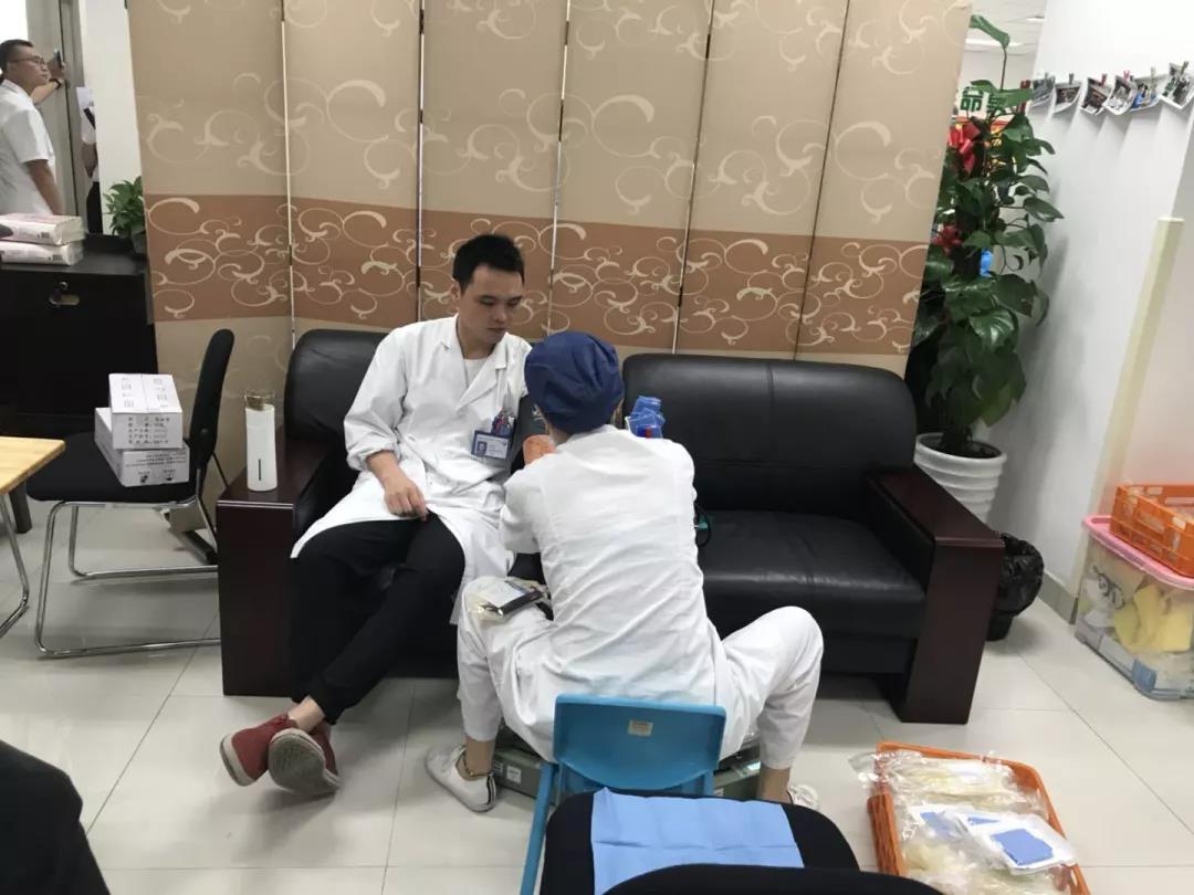 早上八点,在工作人员和志愿者的指导下,医院职工排队登记,体检、化验、献血,整个过程有条不紊地进行着。队伍中有多次无偿献血的老职工,也有初次无偿献血的年轻的医护人员,许多医生和护士献完血后匆匆回到工作岗位上去。作为医护人员,他们更能深刻地体会血液对于病患的重要性。