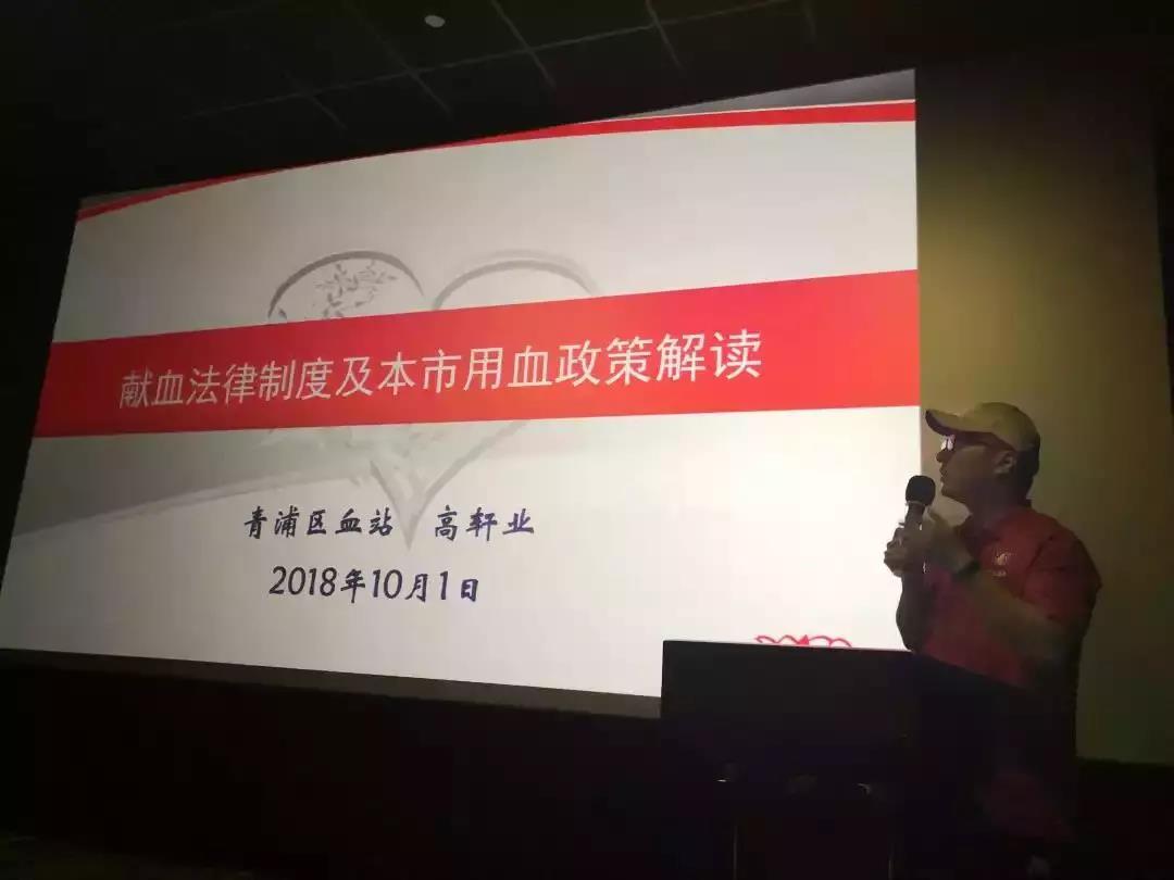 10月1日,由青浦区献血办主办的《献血法》《献血条例》主题纪念活动在SFC上影国际影城青浦富绅店2号厅举行,区卫计委党委委员、副主任,区献血办主任金贵元、区卫计委医政科科长贺秋豪、区献血办副主任、区血站党支部书记、站长沈建国及各街镇社发办(科)相关领导、无偿献血者代表、志愿者代表近60人出席活动。