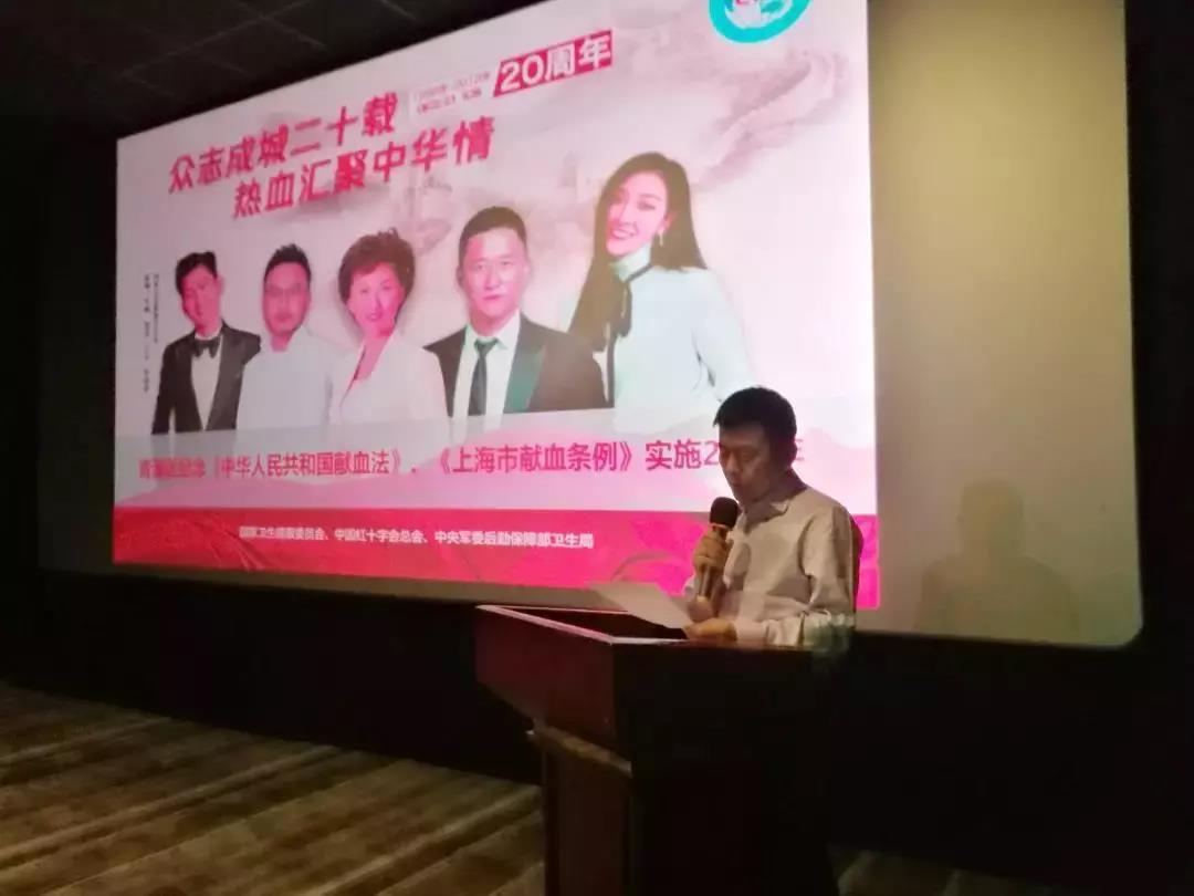 现场一同观看了由国家卫生健康委员会、中国红十字会、中央军委后勤保障部卫生局联合制作的纪念《中华人民共和国献血法》实施20周年主题宣传片,金贵元副主任并作活动致辞。纪念仪式上,青浦区血站党支部副书记、副站长高轩业围绕《献血法律制度及本市用血政策解读》作普法宣传,同时宣布即日起至10月底,由上海市血液管理办公室、上海市血液中心、上海市献血促进会联合制作的15秒无偿献血公益广告将在该影院每场电影播映前进行投放,扩大辖区内无偿献血宣传覆盖,提升市民无偿献血知晓率。整个国庆档期间,观影人次集中,收到很好的宣传效果。