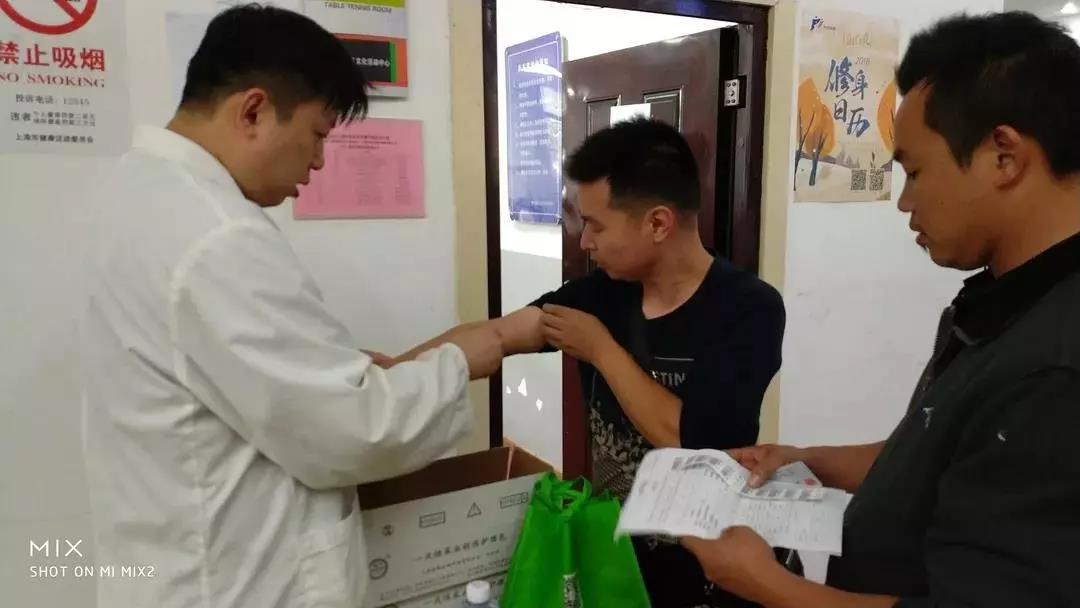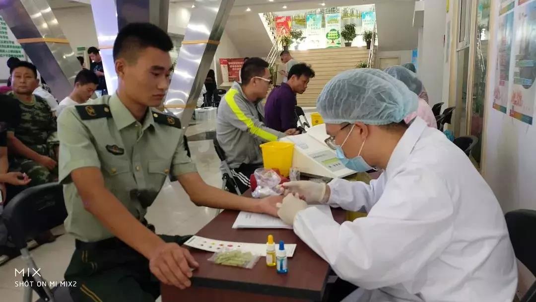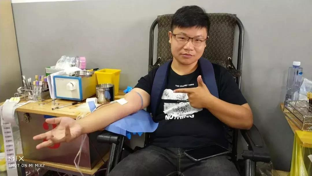手臂消毒+领取血袋
