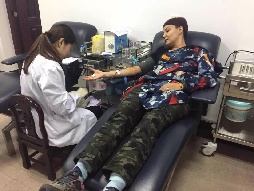 参与本次活动的两位志愿者都来自金山区朱泾镇,在社区负责人和家属的陪同下准时到达血站。来自新疆的姑娘萨尼亚在怀孕生子时,得知自己是Rh阴性血,这次在家人的陪同下,献出200ml。她说:“献出有限的血液,表达无限的爱意,是一件很有意义的事情。”55岁的蒋良华是一名普通的农民,他是Rh阴性AB型血,历年来多次参与金山区的稀有血型实战演练,这次也一同顺利完成演练活动。