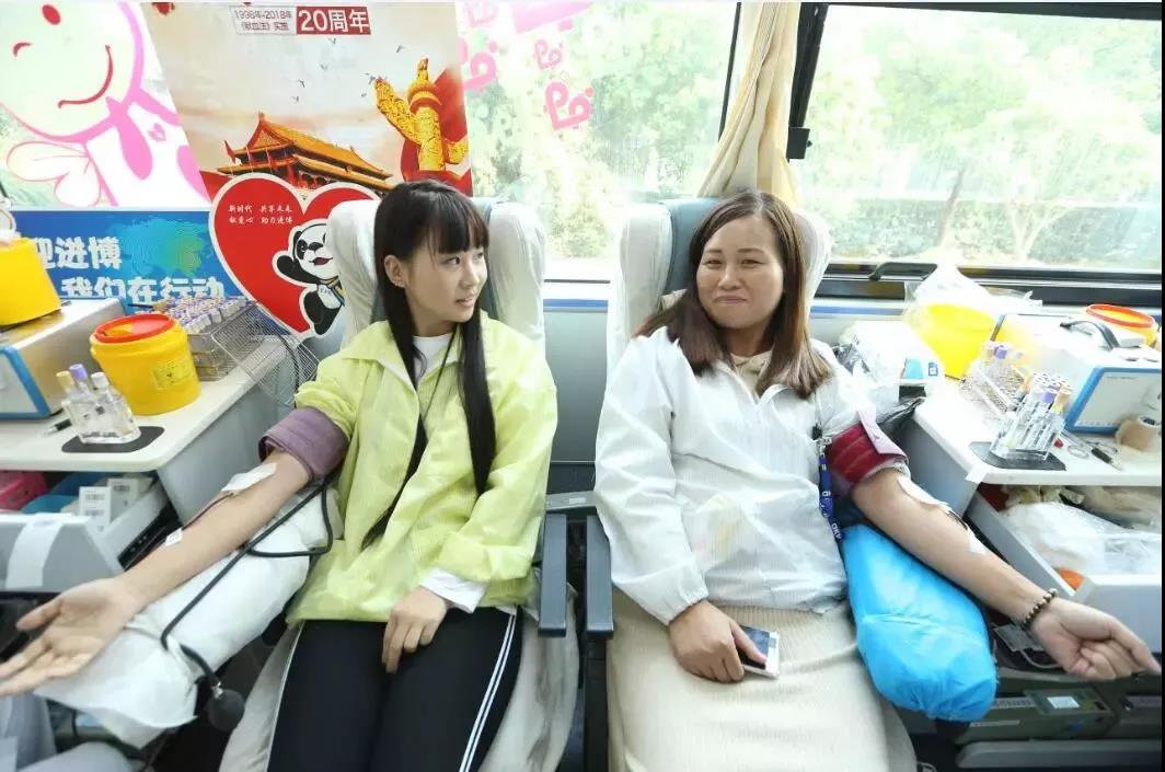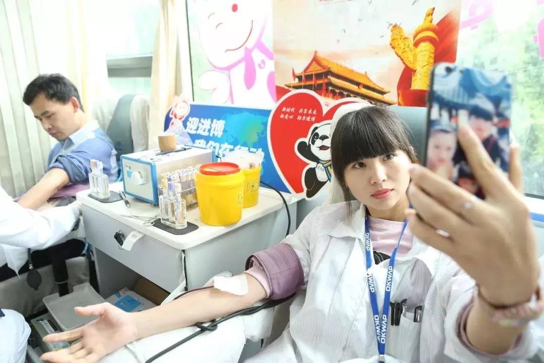 首次参加无偿献血的刘硕、赵欢都觉得很轻松,能通过绵薄之力帮助他人感到心情愉悦。同样是首次参加献血的王杰有点害怕,当看着自己的鲜血缓缓地流进血袋时,他笑着说:“没有传言的那样可怕嘛!”王安菊、张花、赵红秀、王小峰是一个车间的“姐妹”,午餐过后结伴赶来分别献血400ml。在北京、上海曾无偿献血5次的麻金雲趁工作间隙再次献血400ml。90斤出头的陈美从2011年开始参加无偿献血,每年都会献血一次,几乎每次都是捐献400ml,可谓人美心更美。去年献血200ml的沈雪慧这次选择捐献400ml,用她的话说:“献血,对年轻人来说就是小事一桩。”