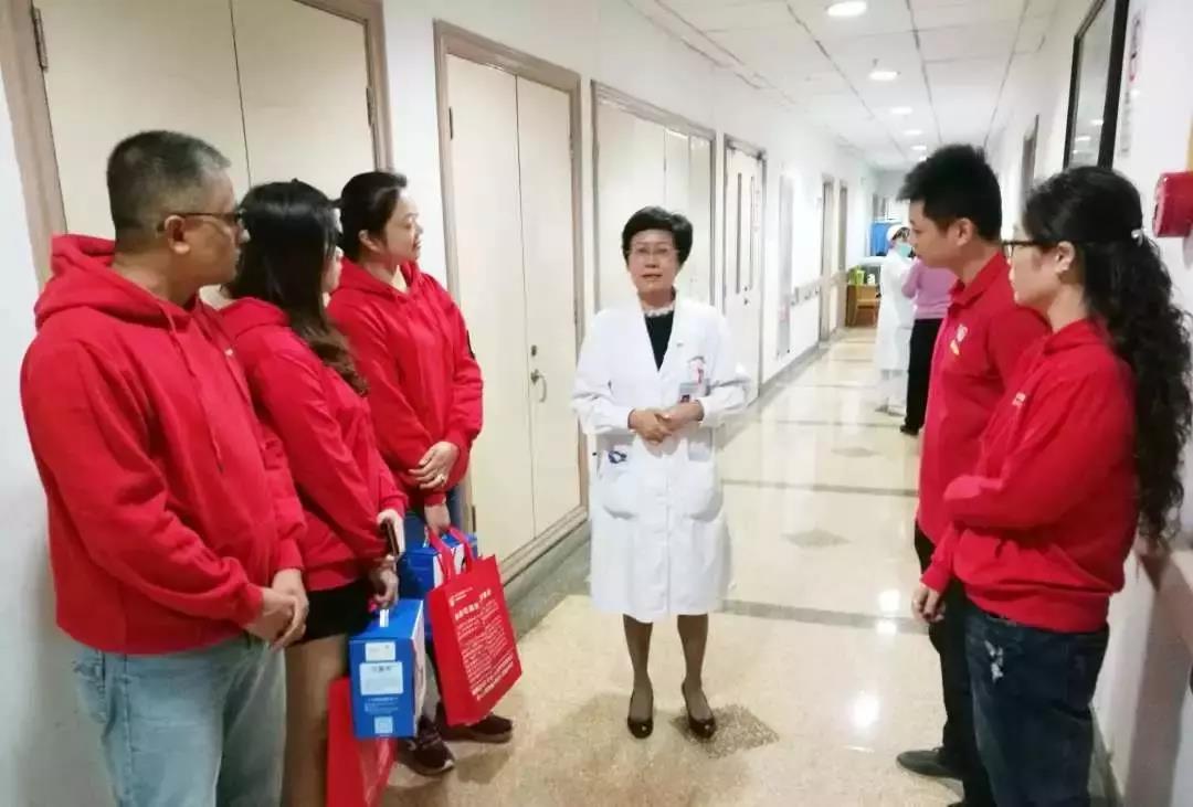 10月20日上午,青浦区无偿献血代言人王佳妮、田海、徐乙琳、管伟和张敏在青浦区血站副站长高轩业的带队下来到复旦大学附属中山医院青浦分院血液科,并在血液科孙丽华主任的亲自接待下探望了正在治疗的部分血液病患者代表,鼓励他们要充分相信现代医疗技术和医务工作者救死扶伤的职业精神,并向他们送上诚挚的祝福。