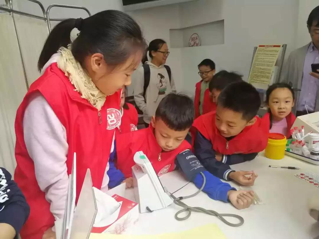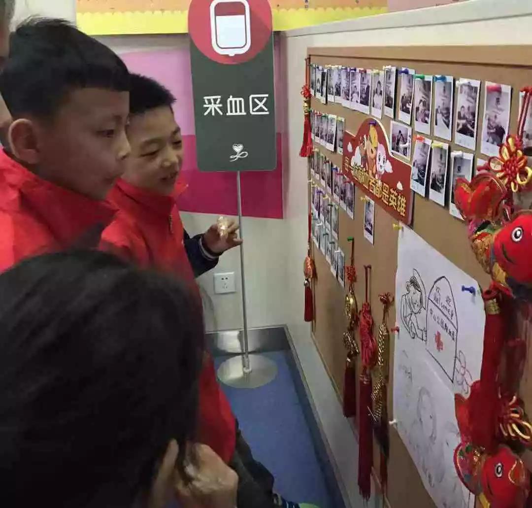 孩子们首先在医务人员的讲解下了解了血液小知识,献血流程、献血注意事项等,然后兴致勃勃地化验了自己的血型,模拟了献血场景。