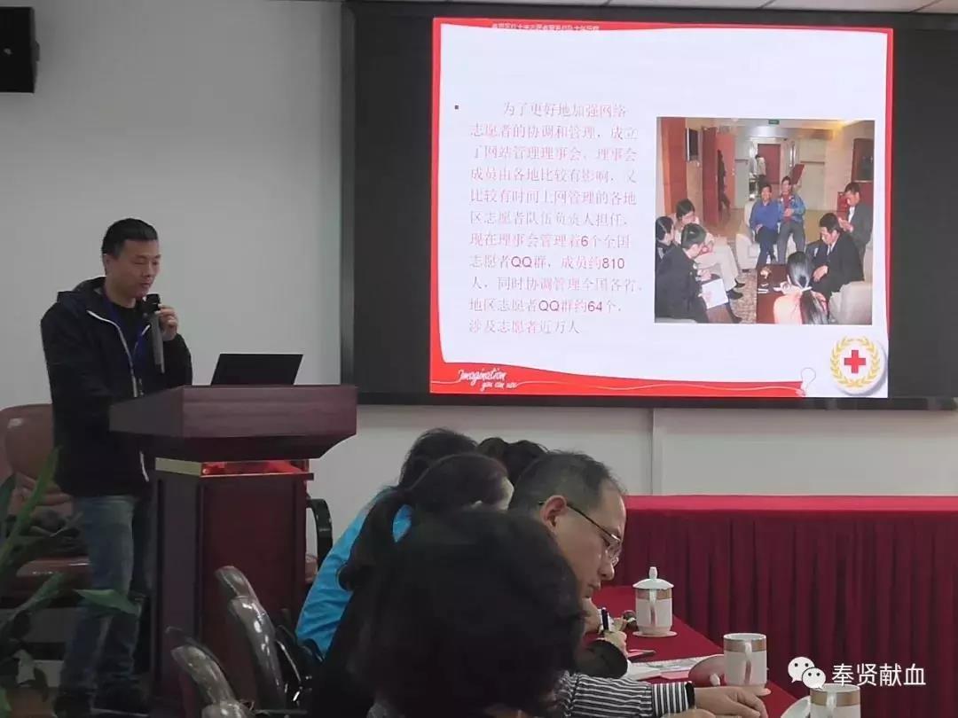 奉贤无偿献血志愿者服务队负责人介绍了服务队的成立16年来的成长、发展和相关的志愿服务工作开展情况。