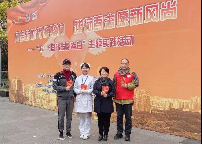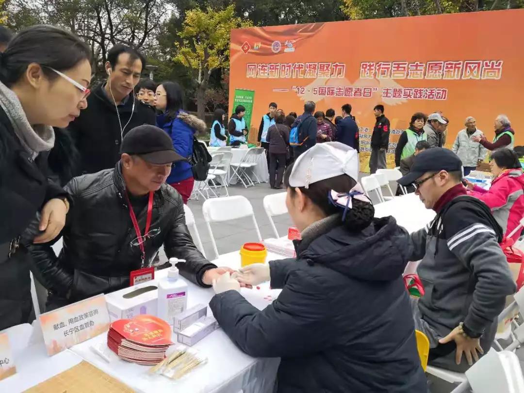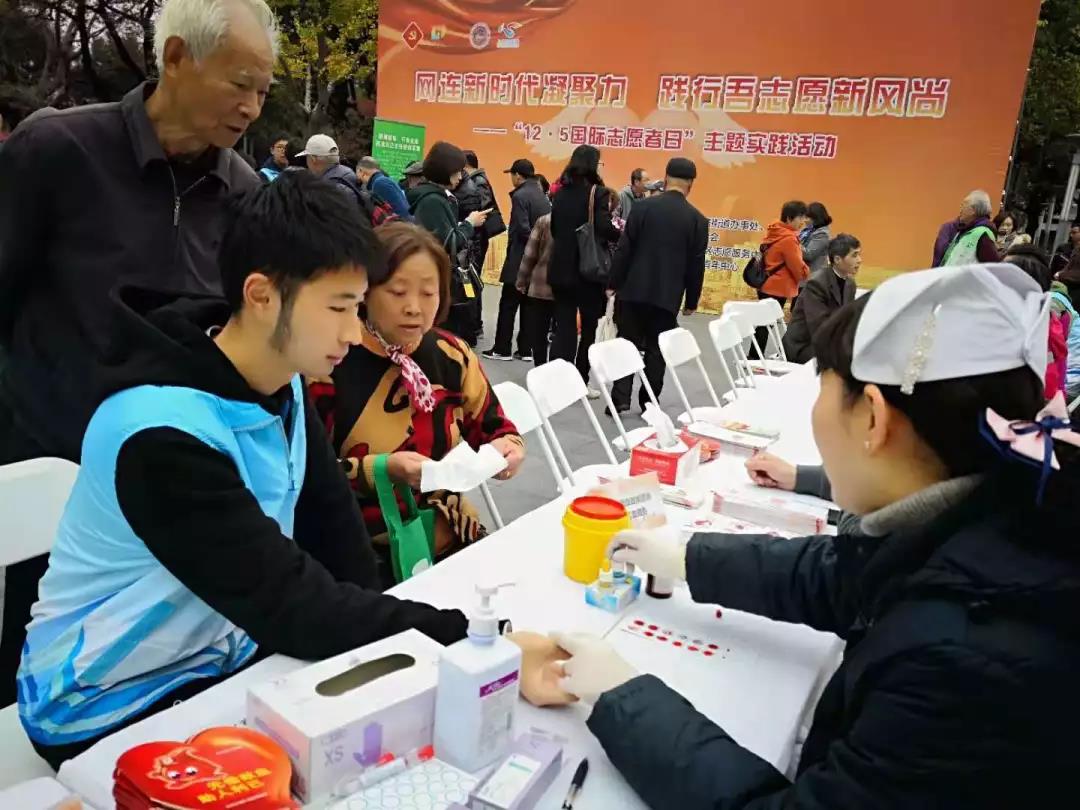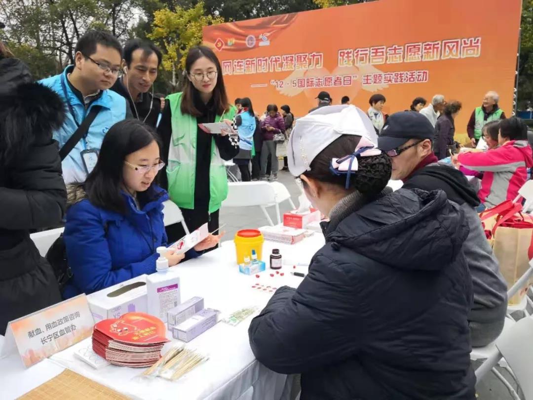 12月5日是第33个国际志愿者日,为了宣传和弘扬无偿献血志愿服务精神,让更多的年轻人了解献血、知晓献血,并参与献血,上午9点,由长宁区血液管理办公室赵琦主任带队的无偿献血招募宣传志愿者团队,在中山公园米兰广场参加了长宁区文明办、华阳路街道党工委、长宁区凝聚力工程学会等部门举办的“网连新时代凝聚力,践行吾志愿新风尚”的大型便民服务活动。