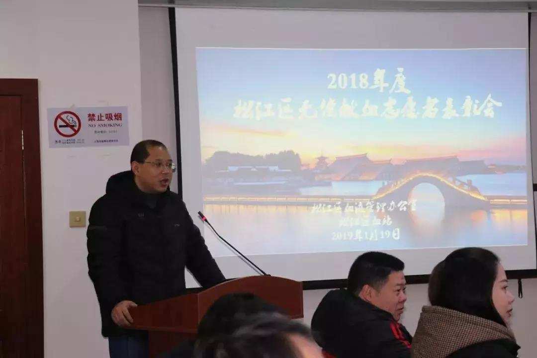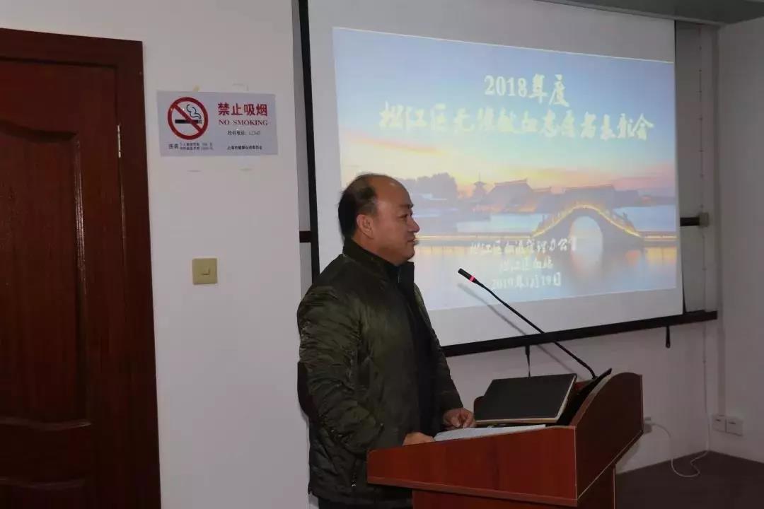松江区再次荣获全国无偿献血先进市。盛站长总结了2018年松江无偿献血工作情况,他指出2018年的无偿献血工作在全社会的共同参与和努力中取得了胜利,完成了工作目标。无偿献血事业任重而道远,要以海纳百川的胸怀面向社会,才能不断地推动无偿献血事业的可持续发展。