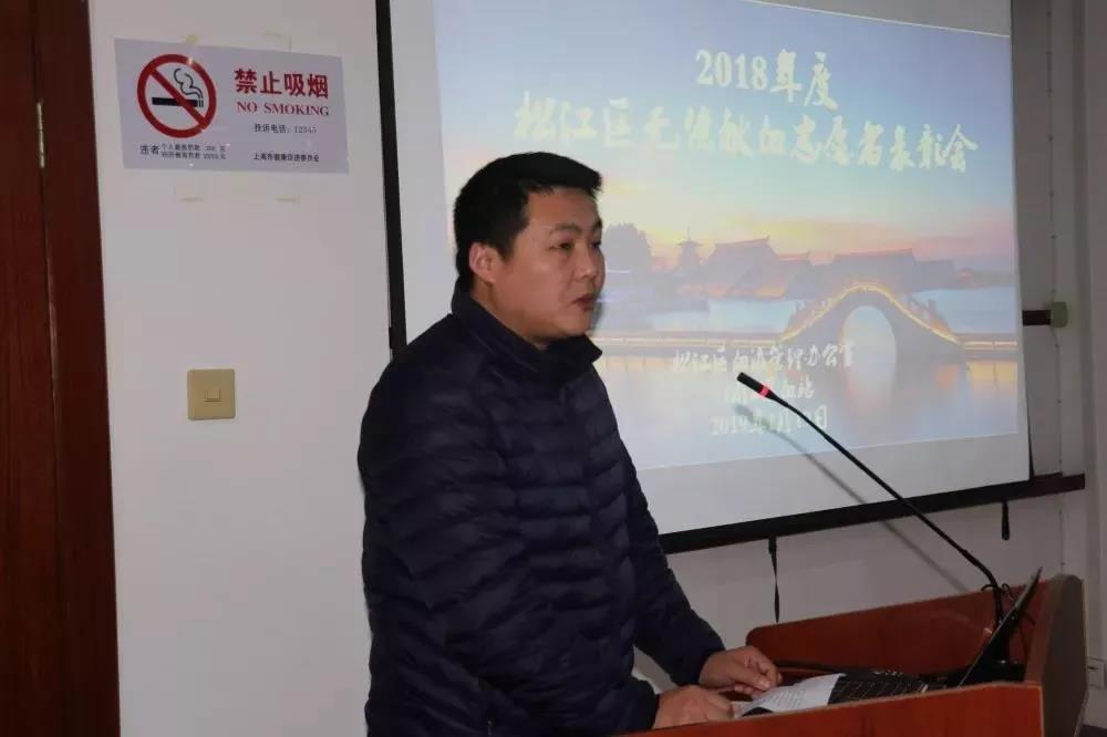 松江区血液管理办公室召开了2018年度志愿者表彰和2019年度志愿者培训会议,松江区宣传服务志愿者、无偿献血志愿者和血小板志愿者20多名志愿者参加,会议由血站书记陆军主持。