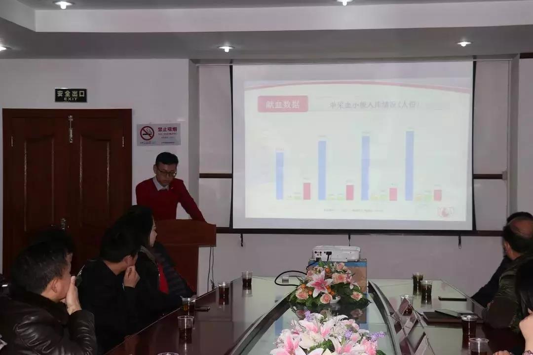 市血管办血源统筹部王玮部长向志愿者们强调了血液是城市安全的守护神,用数据分析血液供需平衡和质量安全的重要性。