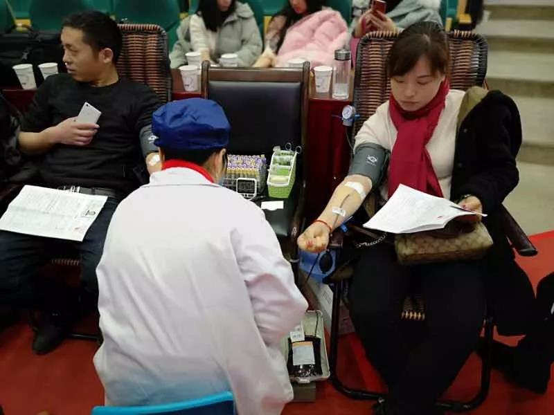 在医务人员和现场志愿者的指导下,大家积极配合认真填写表格、进行体检、化验、采血等程序。天气虽然寒冷,却丝毫不影响他们参与献血的热情,以自己的实际行动为社会奉献出一份爱心。