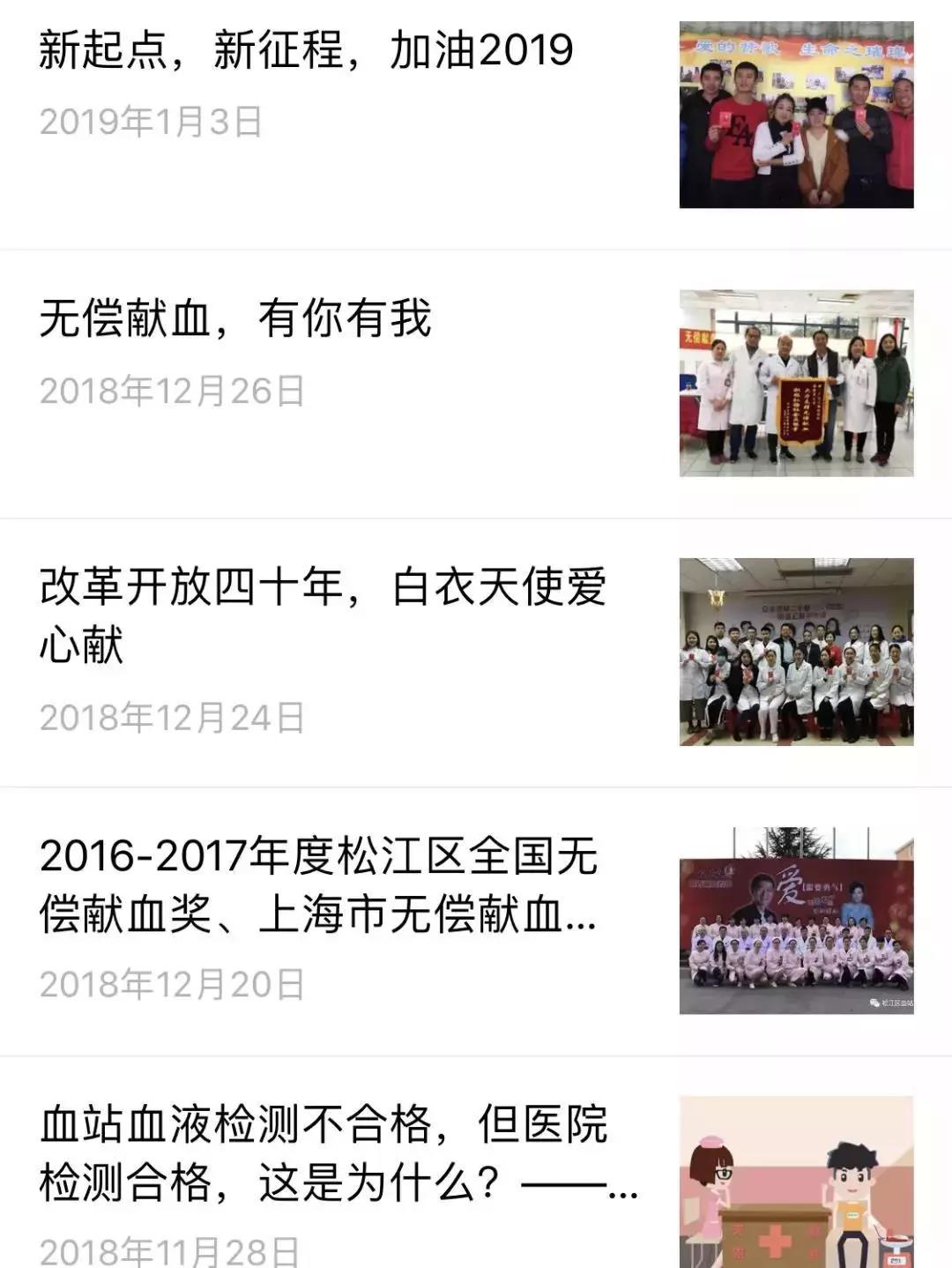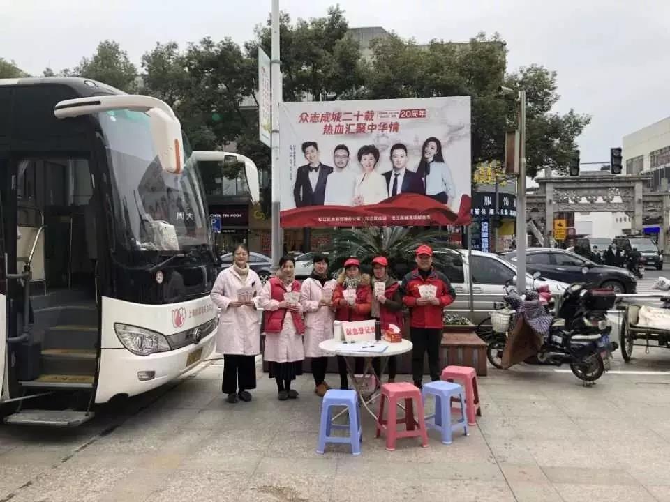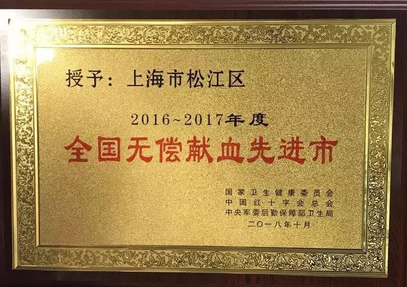 2018年,松江区无偿献血总量30174单位,其中团体献血11820单位,街头献血9378单位,高校献血8423单位,单采血小板553单位,千分之人口献血率17.2,再次荣膺“全国无偿献血先进市”。