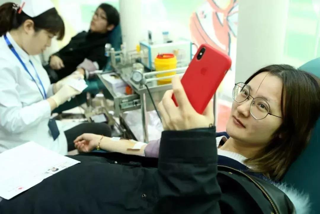 同样是首次参加献血的陈敏杰看上去有点紧张,当完成血液捐献后他微笑着说:“自己把自己吓了,没想到献血其实挺简单的,只不过是举手之劳的事情。”曾有过一次献血经历的杨丽艳体检合格后,淡定自如地躺上采血椅再次献出热血。体重只有90斤出头的吴烨是一位活泼开朗的姑娘,也是第二次参加献血的她献血时不忘用手机自拍,定格下自己奉献爱心的瞬间。